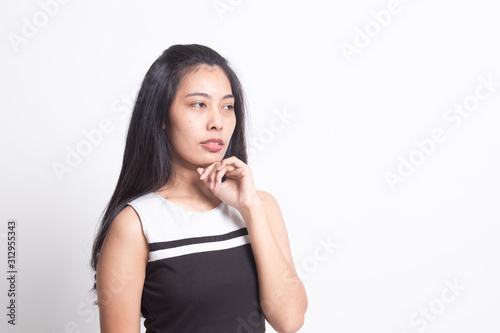 Fototapeta premium Serious young Asian woman look away.