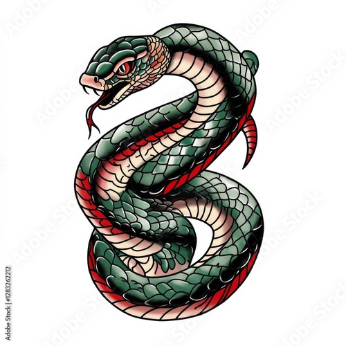 Obraz premium Serpent Coil: A vividly colored illustration of a serpent coiled in a dynamic pose, featuring intricate scales and a striking, assertive presence.