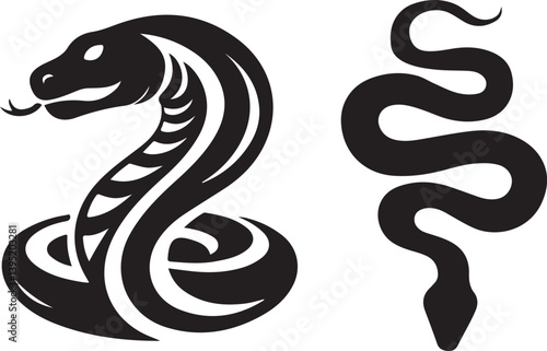 Fototapeta premium Serpent Sovereign – Tattoo-Ready Cobra Design Coiled and alert, this king cobra silhouette is made for designs that need a blend of elegance, power, and primal instinct.