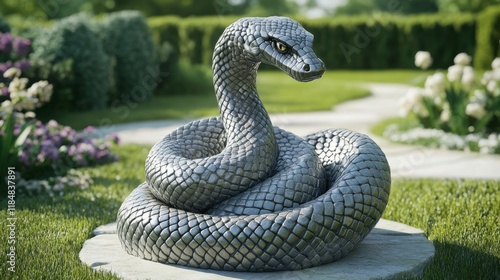 © IzzExpert, Fototapeta premium Serpent Statue in a Lush Garden Setting
