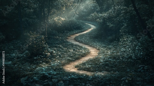 © Penatic Studio, Obraz premium Serpentine Path Through a Sun-Dappled Forest
