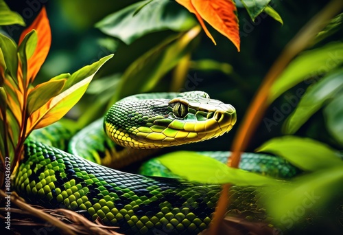 Fototapeta premium serpentine reptile slithering through lush thicket, snake, creature, lizard,...
