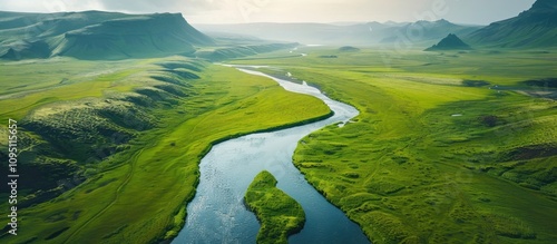 Fototapeta premium Serpentine River Winding Through Lush Icelandic Landscape