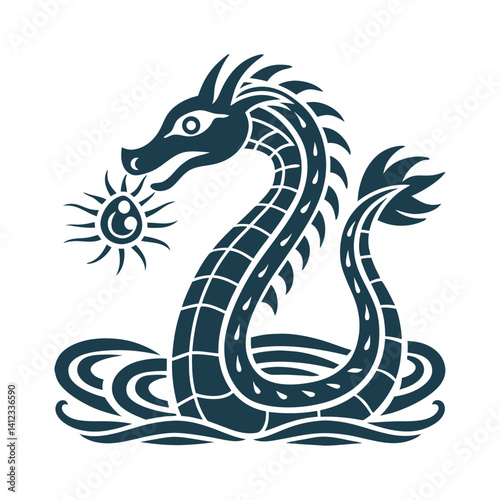 Obraz premium Serpentine Water Dragon with Jewel, Vector Illustration - Dragon – A...