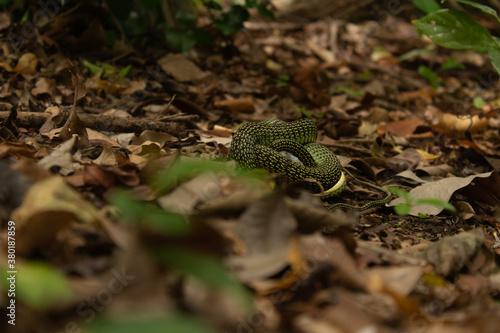 Obraz premium Serpiente enroscada en el bosque comiendo