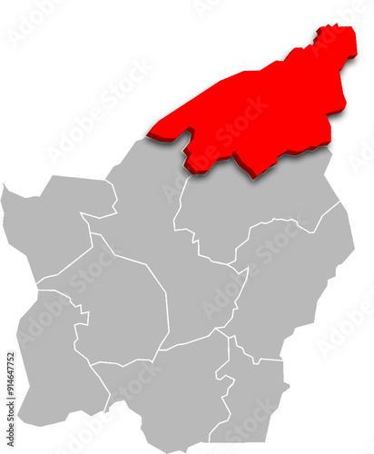 © WALDIR, Obraz premium SERRAVALLE municipality map ADMINISTRATIVE DIVISIONS of SAN MARINO 3d isometric map