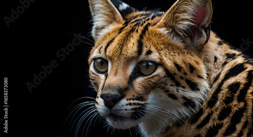 Obraz premium serval isolé sur fond noir