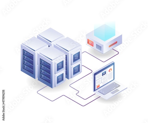 © hasan, Obraz premium Server computer garden network isometric illustration