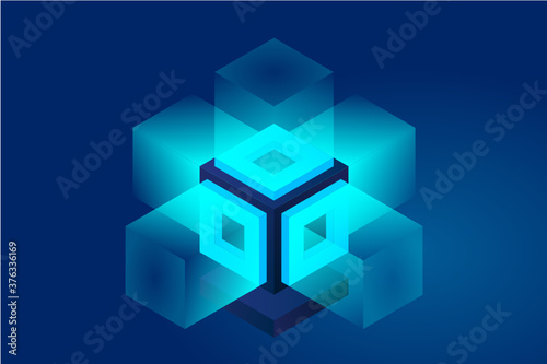 © Aozora, Fototapeta premium Server. Digital space. Data storage. Data center. Big Date. Conceptual illustration, data flow. Isometric vector illustration. 3D