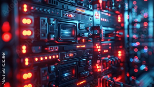 Fototapeta premium Server Rack with Red and Blue Lights