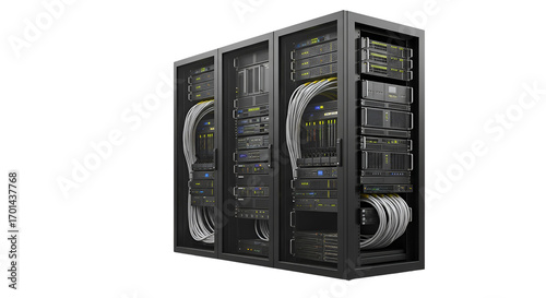 © Muhammad, Obraz premium Server racks holding computer equipment isolated PNG with Transparent Background