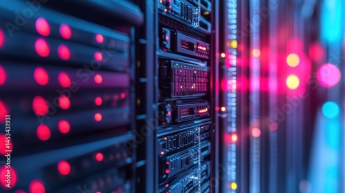 Obraz premium Server racks with glowing lights in a data center
