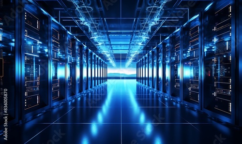 © Md Mojammel, Fototapeta premium server room data center with rows of server racks. 3d render