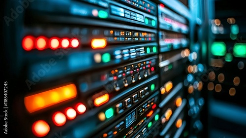 Fototapeta premium Server Room Lights Data Center Technology Network Infrastructure IT Hardware Computing