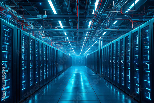© nskyr2, Fototapeta premium Server room of quantum computing. Cyber ​​security and data protection.