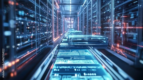 © Rere_Art151, Fototapeta premium Server Room with Blue and Red Lights