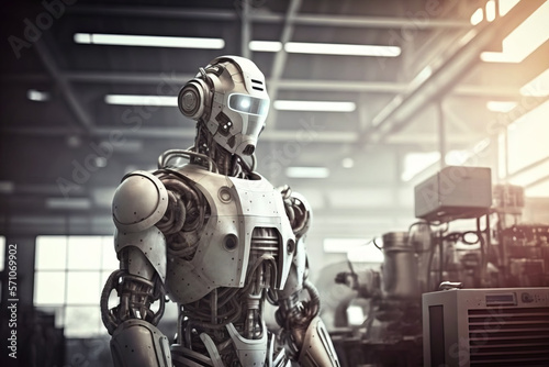 © ReisMedia, Fototapeta premium service robot. sketch art for artist creativity and inspiration. generative AI
