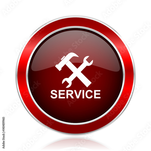 © Alex White, Fototapeta premium Service text red circle chrome border silver metallic vector icon