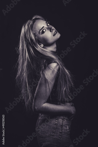 © DavidRawStudio, Naklejka premium Sesión de moda en estudio con modelo femenina