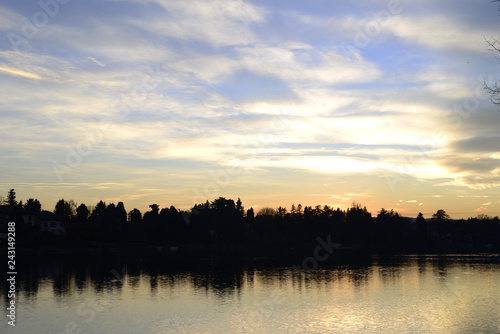 © ClaudioArnese, Fototapeta premium Sesto Calende. sunset on the river