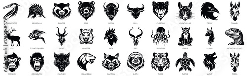 © ABDUL, Obraz premium 30 Set Aggressive Animals Silhouette Vector Illustration