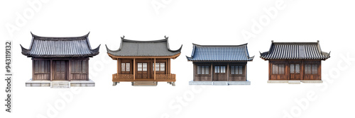 © EnelEva, Fototapeta premium set Ancient Chinese style house on white background
