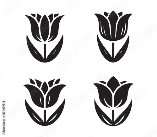 © Design one, Fototapeta premium Set Black and White Silhouette Tulip Icons