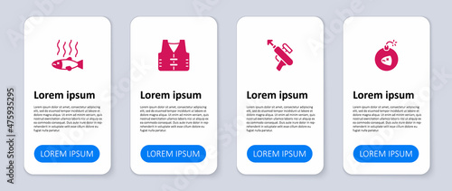 Obraz premium Set Bomb, Fishing harpoon, jacket and Dead fish. Business infographic template. Vector