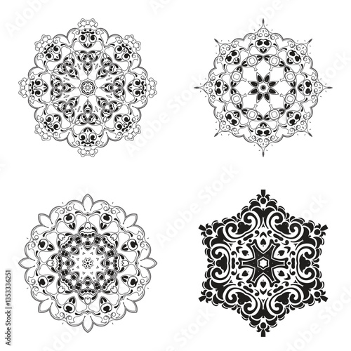 Fototapeta premium set bundle Black and white mandala vector element