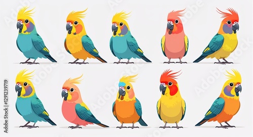© sevenSkies, Obraz premium Set bundle of cockatiel minimalist childish style illustration on plain white background
