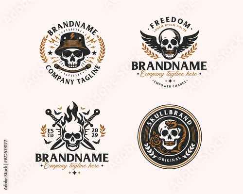 © yourlogocreator, Obraz premium Set bundle vintage skull gangster tattoo for business company
