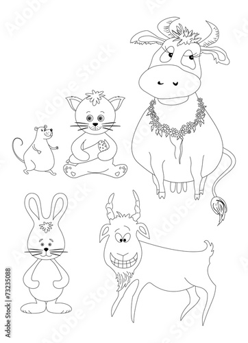 Obraz premium Set cartoon animals, outline