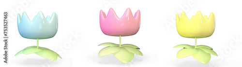 © kgcreeper, Fototapeta premium set cartoon flowers on a white background 3D rendering