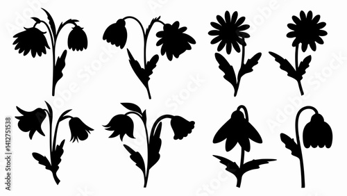 © Rani, Fototapeta premium set chamomile silhouette vector on white background