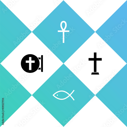 © vector_v, Fototapeta premium Set Christian cross, fish, Cross ankh and icon. Vector.