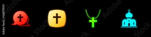 © Kostiantyn, Fototapeta premium Set Christian cross, on chain and Church building icon. Vector