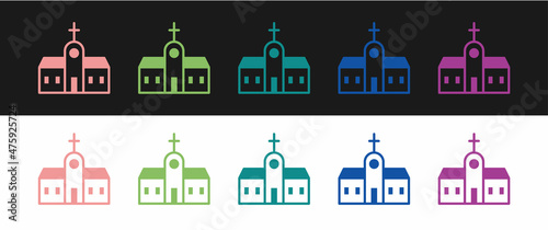Fototapeta premium Set Church building icon isolated on black and white background. Christian...