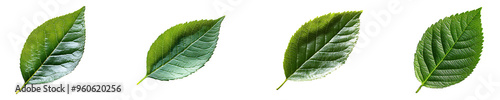 © 121icons, Obraz premium Set, collection of a green leaf with a shadow cast on it isolated on transparent background.