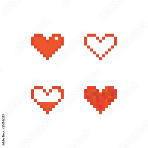 © cosmic_pony, Obraz premium Set, collection of different vector red pixel hearts.