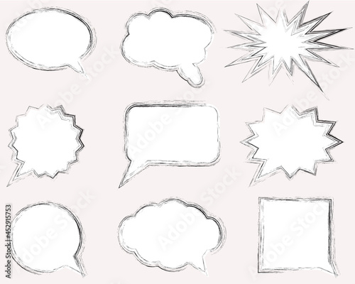 Fototapeta premium Set curly frames for text, watercolor, hand drawing. Round frames, square frames for dialogues and comics.