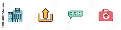 Obraz premium Set Dental clinic, Upload, Like and heart and First aid kit icon. Vector