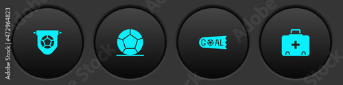 Fototapeta premium Set Football flag pennant, Soccer football, Goal soccer and First aid kit icon. Vector
