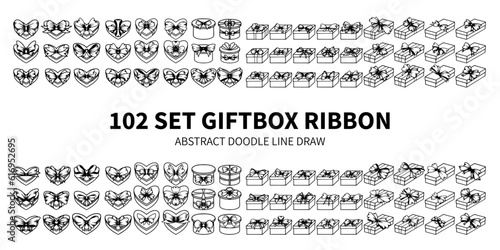 Obraz premium 102 SET GIFTBOX RIBBON ABSTRACT DOODLE LINE DRAW