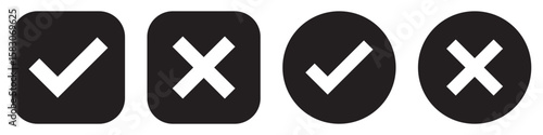 Obraz premium Set green approval check mark and red cross icons in circle and square,...