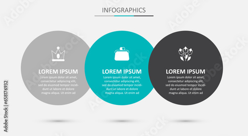 © Iryna, Obraz premium Set Handbag, King crown and Flower tulip. Business infographic template. Vector