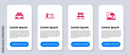 © Iryna, Obraz premium Set High-speed train, Waiting hall, Railway barrier and Cargo wagon. Business infographic template. Vector