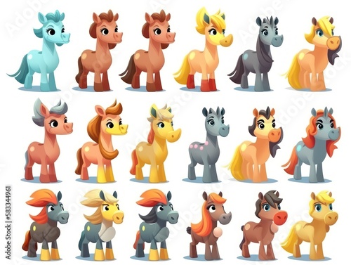 © Diffin, Obraz premium Set horse Cartoon cute character. Collection isolated on white background. generative ai