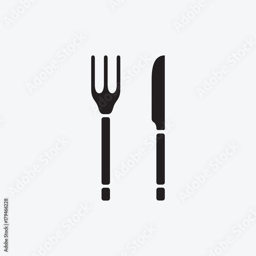 © subjob, Fototapeta premium Set Icon graphic fork and knife. Black and white pictogram for web design. Vector flat illustrations, logo