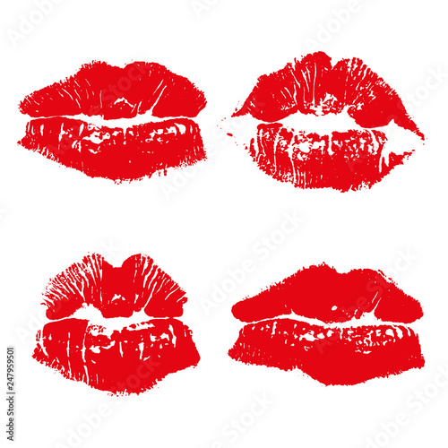 Fototapeta premium Set imprint kiss red lips isolated on white background
