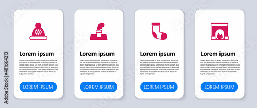 Obraz premium Set Interior fireplace, Christmas stocking, chimney and Santa Claus hat. Business infographic template. Vector